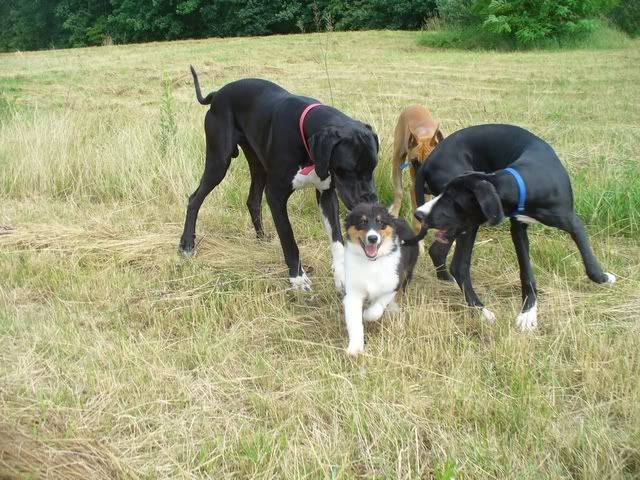 KaRa_ Posted June 28, 2007 Author Posted June 28, 2007 [quote name='g_o_n_i_a']Hej, hej :multi: Co tam u Was? A ok wszystko, młody mi zabiera cały wolny czas ;) Chodze z nim na zmiane z Era,Sharon i Deltą na spacerki;). Ucze go teraz slalomu miedzy nogami jakos nam idzie:multi:a w ogole nauczyl sie sikac w domu na swoj reczniczek:multi: Próba ustawiania I Efekt wprawdzie nie idealny A tu z mamciami na apka:evil_lol::oops: Quote