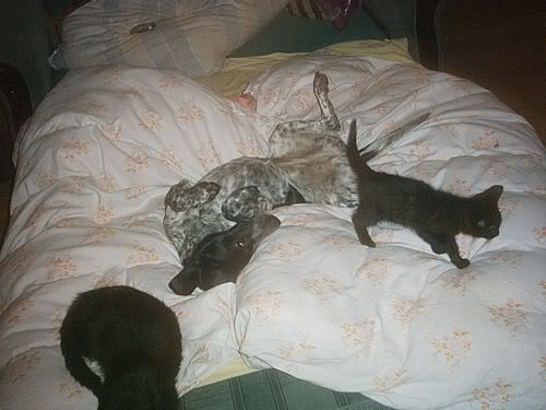 KaRa_ Posted August 30, 2005 Posted August 30, 2005 [quote name='daga10011']Alez piekne te wasze kociska :D .Moja Kiara do tej pory jeszcze nic nie zmalowala,w dzien spi w nocy gania niewidzialne rzeczy po moim lozku..a czasem i widzialne :roll: dzis o 5 rano obudzilam sie z pazurami w posladkach :oops: :roll: .Rece mam cale podrapane-i to efekt jej nocnych polowan-ale tego akurat nie czulam,jako ze mam mocny sen :lol: .Wczoraj znioslam ja do potforkow,ktore namietnie ja wylizaly-na poczatku burczala,ale potem sie poddala z mina bardzo nieszczeslwa :cry: .Ciekawa jestem czy kiedys je zaakceptuje :cry: moje spodnie ja dzis caly dzien frapuja i w koncu mnie dorwala :lol: Skad ja znam - obudzic sie i byc cała podrapana :D Na pewno je zaakceptuje jest młodziutka wiec będzie dobrze :D Quote
