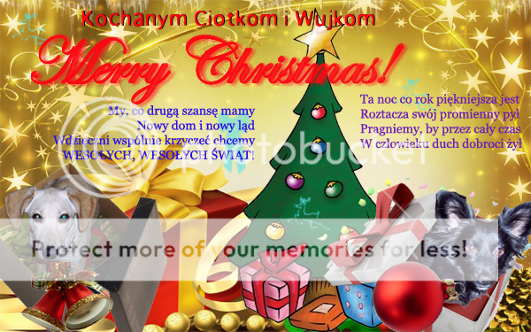 Figa_77 Posted December 24, 2009 Posted December 24, 2009 ja tez dokładam sie do świątecznycn zyczeń, Zycze wam spokoju i pogody ducha, rodzinnych ciepłych świąt i przede wszystkim życze naszym kochanym psiakom żeby w koncu ich życie sie zmnieniło i zeby dostały ciepły kochający dom i kochającego człowieka. My z Mysiatym całujemy wszystkich :) spokojnycb swiat Quote