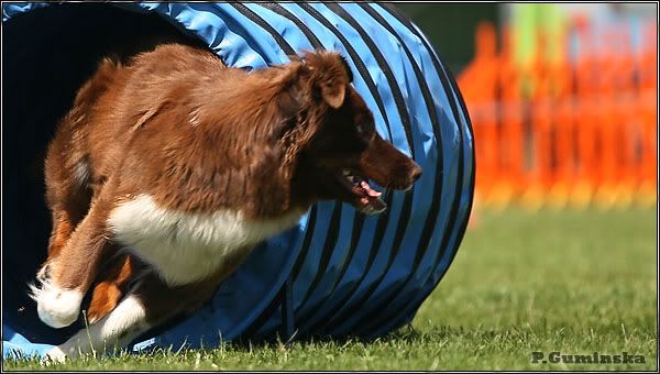 Funia śmigała w deszczu (!!!!) ale za to w 4 ostatnich biegach zdobyła 4 łapki na pieczeń... za odmoy wyejścia do tuneli... no cóż wiedziałam, że dużo się jeszcze musimy nauczyć - ale tuneli nie przewidziałam...