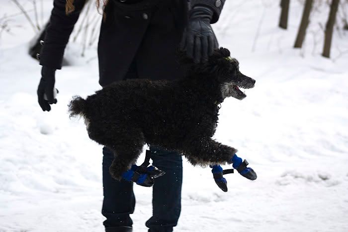 Andzike Posted December 21, 2009 Posted December 21, 2009 Hej, Mój pies (na codzien "zen" - nic nie jest jej w stanie wyprowadzic z równowagi) na widok sniegu dostaje lekkiej glupawki, ale niestety po 5 min. "odpadaja" jej wszystkie 4 lapki... Nad butami zastanawialam sie od jakiegos czasu (po swietach jedziemy w gory, a tam nie ma przebacz... snieg bedzie na 100%) ale przyjaciólka namierzyla w galerii w Leclercu:) Ja dzis nabylam w sklepiku pod Hala Mirowska (11zl za sztuke, sprzedawane na sztuki w rozmiarach 1-9). Po pierwszym spacerze - Nela zachwycona- szalała na sniegu, tylko muszę mocniej jej łapać, bo jednego kapcioszka na sniegu poszukiwałam :D wiecej szczególów na wątku Neli (http://www.dogomania.pl/threads/173100-NELA-juA-w-domu/page10), ale uważam, ze to był dobry zakup :D Quote
