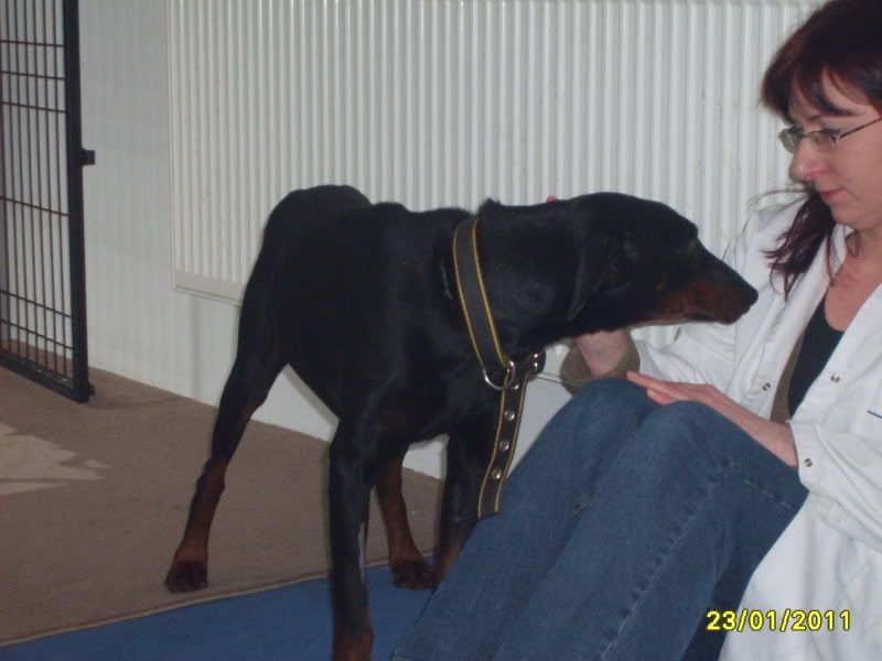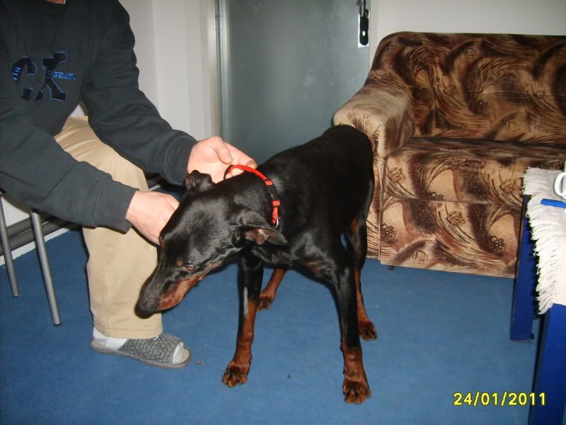 Ania_i_Kropka Posted January 19, 2011 Posted January 19, 2011 W Poliklinice Weterynaryjnej UWM jest cudowny, prze kochany doberman., Dżeki został przywieziony w Sylwestra przez Schronisko jako pies powypadkowy. Miał skomplikowane złamanie przedniej łapy. Obecnie ma założony zewnętrzny stabilizator. P kilku dniach ynaleli się właściciele psa, ale stwierdzili, że nie stać ich na zabieg i nie chcą psa. Dżeki jest ulubieńcem wszystkich lekarzy i studentów. Jest bardzo towarzyski i bardzo grzeczny, pozwala zrobić ze sobą wszystko. Dopóki ma założony stabilizator może mieszkać w lecznicy później będzie musiał trafić do schroniska. Dżeki ma 5 lat. Przed adopcją zostanie wykastrowany. Quote