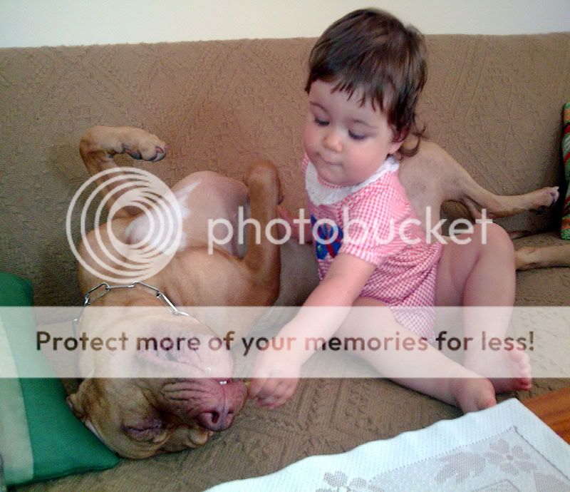 Katica Posted February 27, 2009 Posted February 27, 2009 http://i455.photobucket.com/albums/qq272/orincia/Zdjcie015.jpg http://i455.photobucket.com/albums/qq272/orincia/Zdjcie014.jpg Z 13 miesięcznym pulpecikiem :D wielki pitbull morderca... załuję że nie mam zdjęć jak mała wsadza psu palce do nosa, liczy jej ząbki, ciągnie za ogon bawiąc się w ciuchcię, czy też ujeżdza tego potwora... Jednak, mimo, że znam moją sukę, i wiem że dziecku da zrobić ze sobą wszystko... nigdy nie zostawiłabym dziecka z psem samego, na 5 sek... a nie mówiąc już o jedzącym dziecku... Quote