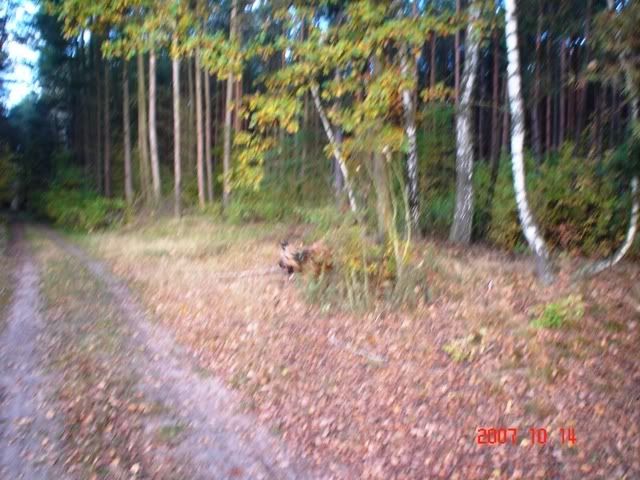 zuzolandia Posted October 13, 2007 Posted October 13, 2007 a potem zaprosiłem dziewczyny do lasu a pikny momy julianowski lasek oj pikny cosik calusno ta moja frelka byla ino kusiole i kusiole ;-) nie zebym tam narzekal ale wiaomo po co inni maja widziec ........ od czasu do czasu trzeba bylo w tym lesie Fruzolka szukac po lotala po jakis tam krzokach ale nochol mom wielki wiec raz dwa wyniuchalem co w trawie piszczy Quote