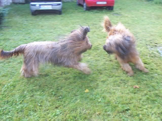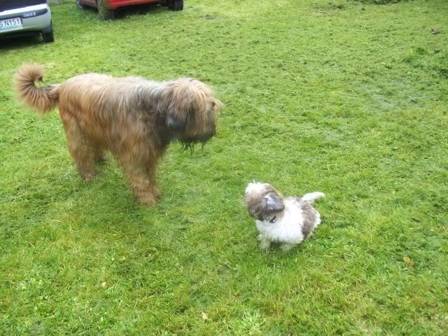 sota36 Posted October 14, 2007 Author Posted October 14, 2007 Z pamietnika Pana Psa wakacjujacego - i szczekajacego co w weekend w trawie i nie tylko piszczalo! Jezdem dalej na wywczasach - wracam w sobote. Przez week ( ha! Sie zna te jedzyki w przeciwienstwie do pani poslanki pewnej...). Dolaczyli do nas ( my to JA i Mój) Zuzolo - fruzowe, ich Ludzie i Mója! ale to juz wiecie, bom kazal Cioci Inie napisac w moim wabieniu, to mnie cytowala! Przyjechali!!! Nareście!!!! Jak sie cieszkam!!!! Mala - Fruzolla - wolala na poczatku sie przygladac z daleka, bo sie chyba bala, ze my w ataku szalu radosci zrobimy z niej prastelek! To Zuzola! Pobieglim do lasu!Na grzyby, czy na cos tam... Quote
