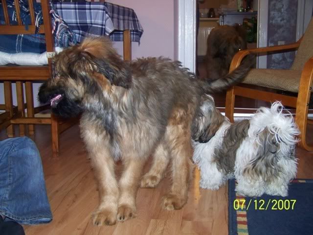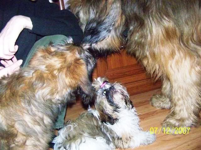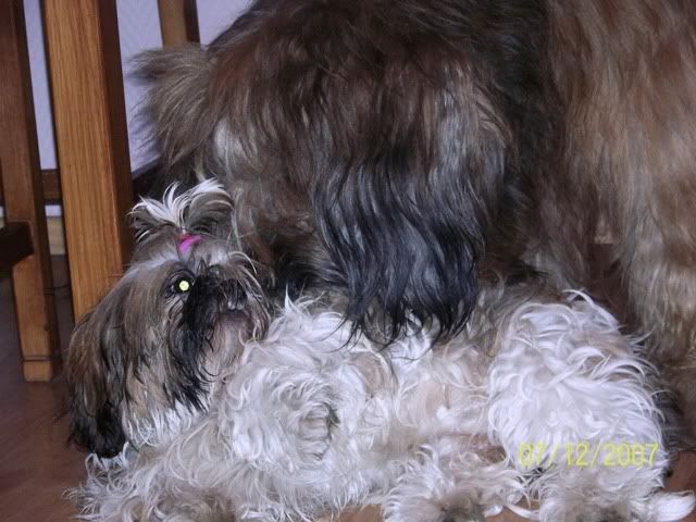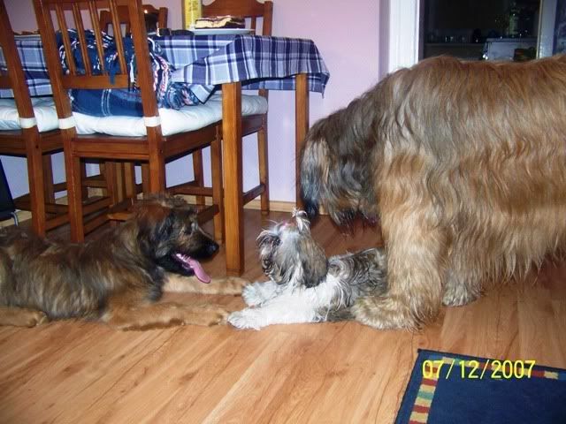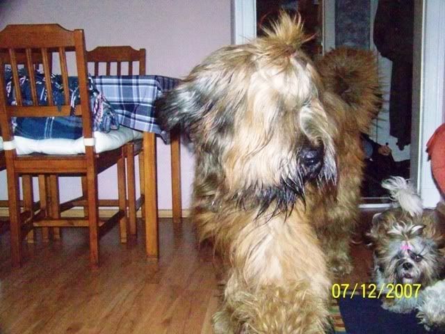 sota36 Posted December 8, 2007 Author Posted December 8, 2007 Z pamietnika Pana Psa - wizyta rodzinna. Oj Kochani... U mnie dzis smutek miesza sie z radocha wczorajsza... Zycie... Pewno wiecie, ze bylem wczoraj u mojego polbrata! Bylem z Ciocia Ina, Fruzylla no i Móje sie przyplatali tez:) Jaki jest moj polbrat? Hmmm - smarkaty, ciemny ( chodzi o kulur siersiuchy), towarzyski, udajacy sie zgrywac odwazniaka! LEJEK!!!!!!!! I siusiumajtek!!!! Co ma dobre strony, bo jego Ludzie maja ...czyste podlogi:) No wiec - przyjechalim spoznieni, bo "dzipsa" mialo inne zdanie, do Jego Ludzi. Maly - Mlody( to o moim polbracie) wkurzal mnie na poczatek, bo startowal do Fruzylli, i trza bylo szczyla poustawiac -hihiii Ale sie poddal, choc po " agresywnym" tatku jezd! Robilim demolke - ale Ludzie odmojego polbrata pozwolili na to!Wiec szczypac sie nie bedem! Latalim jak gupieloki, szkoda tylko Fruzollindy, bo ona to byla najbardziej "obmuldana" przez nas... Waksik nie byl lepciejszy ode nie - po tatusiu chyba - muldal, muldl i ...muldal! Quote