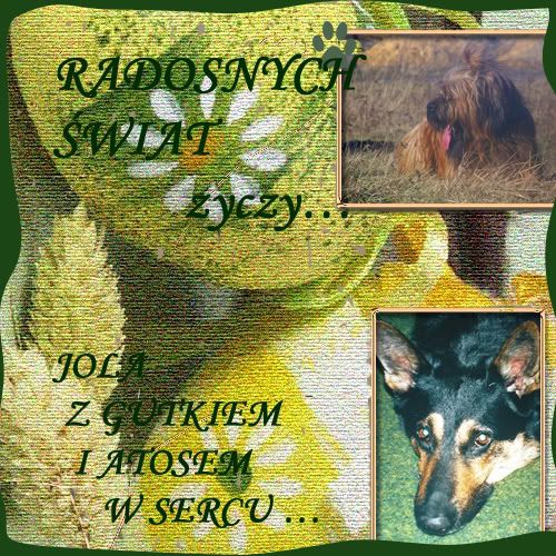 sota36 Posted March 24, 2008 Author Posted March 24, 2008 Z pamietnika Pana Psa - swiatecznego ... No nie! juz mi tu co "poniektore" Ciotki wygaduja, ze buchnalem ze stolu panskiego makowiec! A co?Ze niby nie wolno?no szybko to zrobilem! Widze, ze mam nowa Ciotke :) Ciotke od Klocusia! :loveu: To dla Ciotki - nie dla Klocka, bom ja NORMALNY JEZDEM!!!! Choc odmiennosci - spoko! No wiec - SWIETA!!!!!! Czyli "dolce far niente"! psss. Mója histeryca, wiec zanudza mnei tymi histerycznymi powiedzonkami. [SIZE=2]Wczoraj bylem u Pani babci od Skotiego - bylo ok, ale mnie wkurzyl! Na koniec! Kiedy zaczal sie bawic Jola - nie wytrzymalem i musialem go opierdzielic! [SIZE=1]pssss. upssss Jola sie teraz wkurzy, bone lubi jak brzydko szczekam! [SIZE=2]Dzis , bylem na psacerze, ale tak semysle, czy to nie te swieta - snieg padal!!!!!! Pojechalem na dziale ( nie,nie!!! to nie ta "dziala"!!!)To MOJA dziala! I darlem, jak to ja, ryjka! otem szarpalem sie z Mójem, no bo trzeba te " karorie" spalic! I Mój myslal, ze on jest ...sliniejszy...hihihi. Nie daje rady! na litosc mnie bierze -zobaczcie jak prosi,jakiego slodziaka udaje! Oho! Chyba sie zaczyna wkurzac, ze nie chce puscic pileczki... W koncu ...odpuscil! On! Nie ja!!!! A snieg se padal i padal... Quote