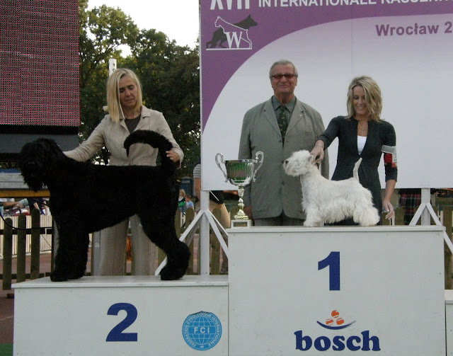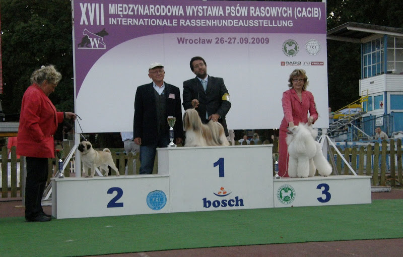Viris Posted September 27, 2009 Posted September 27, 2009 Ja mam zdjęcia z finałów, ale jestem jeszcze we Wrocławiu więc dziś i jutro pewnie nic nie wstawię. Zaraz postaram się napisać jakie rasy na pudłach były. Para Hodowlana z dziś : 1 - chiński grzywacz 2 - seter angielski 3 - husky Rasy polskie z dziś - ogar polski a BIS ras polskich całej wystawy PON BIS weteranów z dziś : 1- shih tzu 2- bokser i 3 - samoyed BIS puppy z dziś - 1- husky 2 szpic miniaturowy 3 sznaucer miniaturowy BIS junior z dziś - 1 czarny terier 2 mops 3 rhodesian ridgeback BOG II - 1nowofundland, 2bokser, 3bullmastiff BOG V - 1thai ridgeback, 2samoyed, 3 basenji BOG VI - 1basset hound, 2bloodhound, 3grand basset griffon vendeen BOG VII - 1 seter irlandzki,2 seter angielski, 3 wyżeł niemiecki krótkowłosy BOG IX - 1 lhasa apso, 2mops, 3 pudel miniaturowy biały BIS 1PON, 2lhasa apso, 3thai ridgeback Od siebie mogę powiedzieć tylko tyle że na tego thaia mogłabym patrzyć godzinami, przepiękne zwierzę. Quote