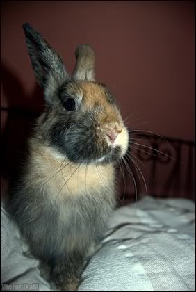 WeronikaM Posted July 29, 2010 Author Posted July 29, 2010 właśnie czytam sobie miniaturkibeztajemnic.pl i zanalzłam coś, co bardzo dobrze opisuje częste zachowanie premiera :lol: dzikie skoki- z obrotami w powietrzu, wyrzucaniem nóg na boki, piruetami i potrząsaniem łebka, to oznaka radości i szczęścia, zwana przez nas głupawką. a myślałam, że coś z nim nie tak :lol: od czasu, kiedy wróciłam z wawy królas jest od 10 rano do 2 w nocy wypuszczony (+\- 3 h), bo ciągle siedze w domu :) tak mam zabezpieczony pokój przed różnymi niebezpieczeństwami np. kable itp. , że jest 1000% bezpieczeństwa dla króla. Chciałam nawet raz pójść spać z królem wypuszcxonym, ale nie mogłam, bo moja głowa, która wystawała spod pościeli była wylizywana w każdym miejscu, a oprócz tego premier skubał moje włosy :lol: musiałam go zamknąć :) zawsze jak go zamykam to domaga się , aby go wypuścic - pokazuje to w postaci gryzienia krat - kurde czasem jest to tak wkuzające, że nie moge zasnąć :lol: , ale jak zaczyna gryżć , to ja oddaje odgłosy w stylu "szszsszszszszyyyyyy" i król od razu przestaje :lol: dobra troche się rozpisałam :lol: ludzie posiadający króliki : jaki granulat jest "najlepszy" ? ja dotąd podawałam granulat versele laga complete, a na tej stronie jest , że szkodliwa :mdleje: podobno grainless complete jest jak najmniej szkodliwa :roll: , cuni complete mi się kończy , więc musze szybko coś zamówić , tylko co? Quote