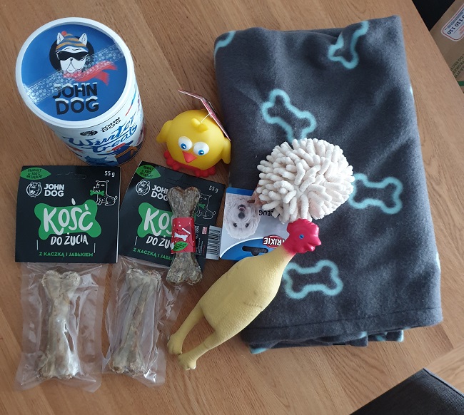 Ellig Posted February 20, 2021 Posted February 20, 2021 48 minut temu, Ewa Marta napisał: A czy nie lepiej, żeby zaczekala u kogoś kto ja przenocuje do poniedziałku? Bo w poniedziałek Magda pracuje bardzo długo, więc może lepiej nie zostawiać jej od razu samej na wiele godzin? Klatka jest na pewno w piwnicy, bo ja widzę. Czekam tylko aż mąż wstanie, bo odsypia nocna jazde. Poszperam w zapasach i może jakąś kołdrę znajdę na tymczasowe posłanko. Mam już spakowana smycz agat21, 5metrowa linkę, 3 pluszaki, piłeczkę gumową, piłka na sznurku nie najlepszej jakości, ale na początek wystarczy. No i obroże, ale nie Wiem, czy będzie dobra. Dorzucilam słoik naturalnych małych ciasteczek na nagrody na spacer. Zdjecie części rzeczy od Ewy Marty. 1 Quote