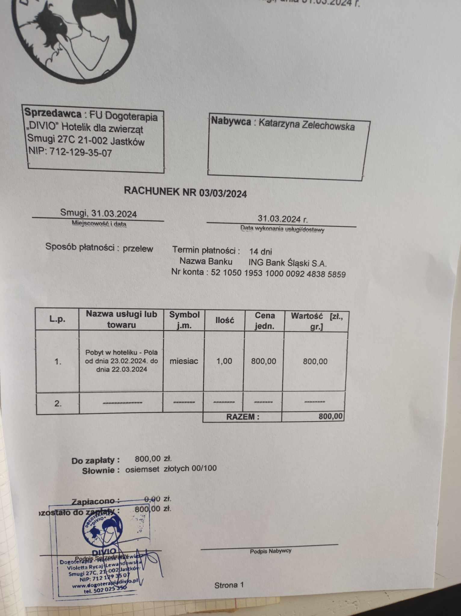 rozi Posted April 19, 2024 Author Posted April 19, 2024 Mam fakturę za dzisiejszą wizytę plus Simparica 3 tabletki faktura wizyta 19 kwietnia.pdf specyfikacja do fv 19 kwietnia.pdf Quote