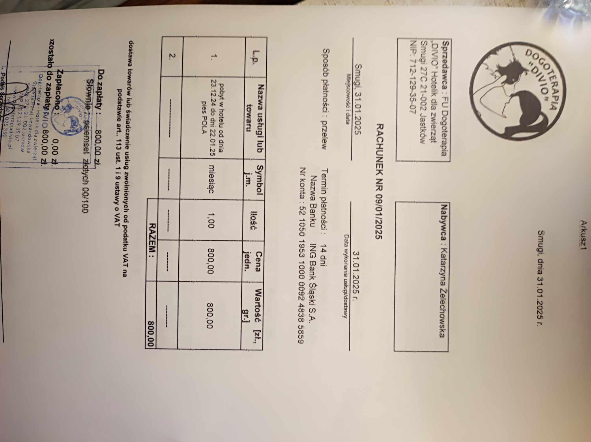 rozi Posted January 26, 2025 Author Posted January 26, 2025 Dnia 6.02.2024 o 13:36, rozi napisał: DEKLARACJE Stałe: 20zł - seramarias - wpł. luty, marzec, kwiecień, maj, czerwiec, lipiec, sierpień, wrzesień, październik, listopad, grudzień - 2025 styczeń 10zł - Nesiowata - wpł. luty, marzec, kwiecień, maj, czerwiec, lipiec, sierpień, wrzesień, październik, listopad, grudzień - 2025 styczeń, luty 10zł - Jo37 - wpł. luty, marzec kwiecień, maj, czerwiec, lipiec, sierpień, wrzesień, październik, listopad, grudzień 50zł - Mruczka - wpł. luty, marzec, kwiecień, maj, czerwiec, lipiec, sierpień, wrzesień, październik, listopad, grudzień - 2025 styczeń 20zł - Pani Irenka z Katowic - wpł. luty, marzec, kwiecień, maj, czerwiec, lipiec, sierpień, wrzesień, październik, listopad, grudzień - 2025 styczeń 25zł - Besia11 - wpł. luty, marzec, kwiecień, maj, czerwiec, lipiec, sierpień, wrzesień, październik, listopad, grudzień 10zł - Isiak - wpł. luty, marzec, kwiecień, maj, czerwiec, lipiec, sierpień, wrzesień, październik, listopad, grudzień - 2025 styczeń REZYGNACJA 20zł - Poker - wpł. luty, marzec, kwiecień, maj, czerwiec - koniec 40zł - Aldrumka - do grudnia 2024 - wpł. luty, kwiecień, maj, czerwiec, lipiec, sierpień, wrzesień, październik, listopad, grudzień - 2025 styczeń 20zł - jankamałpa - wpł. luty, marzec, kwiecień, maj, czerwiec, lipiec, sierpień, wrzesień, październik, listopad, grudzień 50zł - Koja - wpł. luty, marzec, kwiecień, maj, czerwiec, lipiec, sierpień, wrzesień, październik, listopad, grudzień - 2025 styczeń KONIEC 30zł - sonia71 - do grudnia 2024 - wpł. luty, marzec, kwiecień, maj, czerwiec, lipiec, sierpień, wrzesień, październik, listopad, grudzień KONIEC 20zł - nina65 - wpł. luty, marzec, kwiecień, maj, czerwiec, lipiec, sierpień, wrzesień, październik, listopad, grudzień - 2025 styczeń 10zł - b-b - wpł. luty, marzec, kwiecień, maj, czerwiec, lipiec, sierpień, wrzesień, październik, listopad, grudzień 50zł - uxmal - wpł. luty, marzec, kwiecień, maj, czerwiec, lipiec, sierpień, wrzesień, październik, listopad, grudzień - 2025 styczeń 150zł - Anna G-R - wpł. luty, marzec, kwiecień, maj, czerwiec, lipiec, sierpień, wrzesień, październik, listopad, grudzień ZAMKNIĘTA 20zł - guccio - wpł. luty, marzec, kwiecień, maj = 80zł przekazane dla Sabinki, wpłacone dla Poli przez rozi ZAMKNIĘTA 25zł - Monika z Katowic - wpł. luty, marzec, kwiecień - od maja zwiększona 50zł - Monika z Katowic - wpł. maj, czerwiec, lipiec, sierpień, wrzesień, październik, listopad, grudzień - 2025 styczeń 20zł - Grażka123 już na moje konto - listopad, grudzień - 2025 styczeń, luty ----------------------------------------------------------- POZA MOIM KONTEM: 100zł - ZEA - rozliczane przy fakturach - luty, marzec, kwiecień, maj, czerwiec, lipiec, sierpień, wrzesień - KONIEC 20zł - Grażka123 - na konto ZEA - luty, marzec, kwiecień, maj, czerwiec, lipiec, sierpień, wrzesień, październik - od listopada na moje konto -------------------------------------------------------------------- ŁĄCZNIE OD WRZEŚNIA 585zł zadeklarowane miesięcznie (rezygnacja ZEA) ŁĄCZNIE OD STYCZNIA 555zł zadeklarowane miesięcznie (koniec wpłat Sonia71) Jednorazowe: 100zł - seramarias - wpłacone 50zł - Grażka 123 - NA KONTO ZEA Nesiowata 10zł wpłacone koja bonus 50zł przy wpłacie za luty Nesiowata 20zł dodatkowo Toperz - 250zł Agat21 - bazarek imienny - 708zł koja bonus 50zł przy wpłacie za marzec Toperz - 125zł Mój bazarek LOTTO - 382zł Skarpeta Talcott - 300zł ----------------------------------------------------------- 1.313zł - 100zł za badanie kup -------------------------------------------------------------------------- 1.213zł + 382zł -------------------------- 1.595zł + 300zł ---------------------------------- 1.895zł + 50zł - koja bonus w kwietniu +130zł - Nadziejka bazarek ---------------------------------------- 2.075zł - 65zł za szampon leczniczy ----------------------------------------- 2.010zł + 536zł mój bazarek LOTTO -------------------------------------- 2.546zł + 100zł - Toperz + 510zł - Aldrumka bazarek ---------------------------------------------- 3.156zł - 2.250zł - przelew do ZEA na opłacenie pierwszej operacji ---------------------------------------- 906zł + 78zł - bazarek Nadziejki ------------------------------------ 984zł + 100zł - Toperz + 50zł - koja bonus w maju + 30zł - mój bazarek z sadzonkami ------------------------------------------ 1.164zł + 240zł Aldrumka z bazarku "dla Jasnej i Ciemnej" ----------------------------------------------- 1.404zł + 50zł - Aldrumka bazarek książkowy + 50zł - Anna G-R bonus majowy - 52zł - wyzyta wet 18 maja ------------------------------------------------------ 1.452zł + 378zł - mój bazarek lotto ------------------------------------------- 1.830zł + 50zł - koja bonus czerwcowy +10zł - Aldrumka bonus + 120zł - Toperz ---------------------------------------------------- 2.010zł + 249zł -Aldrumka bazarek mała sunia - 50zł - wizyta wet i leki - 100zł - zabieg wyłuskiwania ---------------------------------------- 2.109zł + 50zł - Anna G-R bonus czerwiec ------------------------------------------------ 2.159zł + 50zł - koja bonus lipcowy + 120zł - bazarek Nadziejki ----------------------------------------- 2.329zł + 70zł bazarek Nadziejki + 100zł Toperz -------------------------------------------- 2.499zł + 50zł - Anna G-R bonus lipiec - 135zł - do ZEA dopłata do hoteliku ----------------------------------------------------- 2.414zł + 50zł - Koja bonus sierniowy +100zł - Toperz ---------------------------------------------- 2.564zł + 20zł - Nadziejka niespodzianka + 50zł - Anna G-R bonus sierpień ------------------------------------------------------ 2.634zł + 15zł - Nadziejka bazarek -------------------------------------------------- 2.649zł