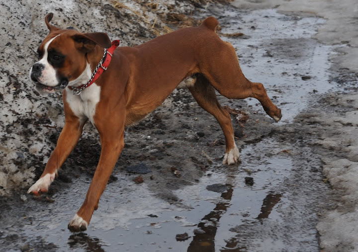 Ilmolachy Posted March 2, 2010 Author Posted March 2, 2010 no a jak przedwiośnie to spacery w nasileniu, bo Pani nie marznie przedwiośnie=wrony, gawrony i inne ptaszyska na polach i na zakrętach ciężko jest w błocie zakręcić a błoto furkocze spod łap i kałuże chlapią no raj na ziemi ... Quote