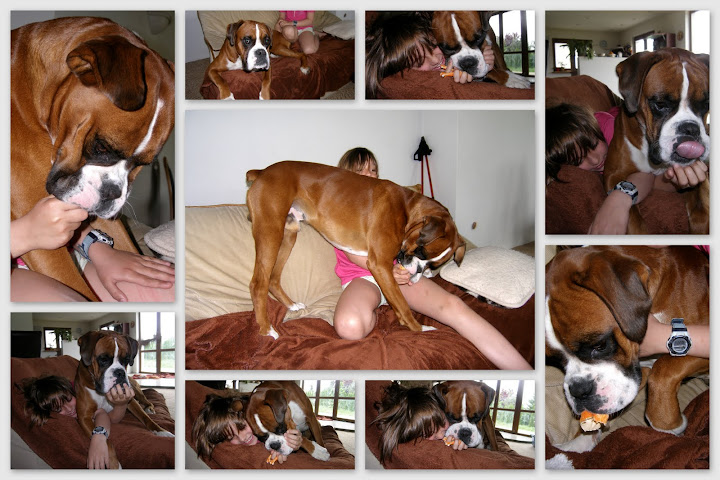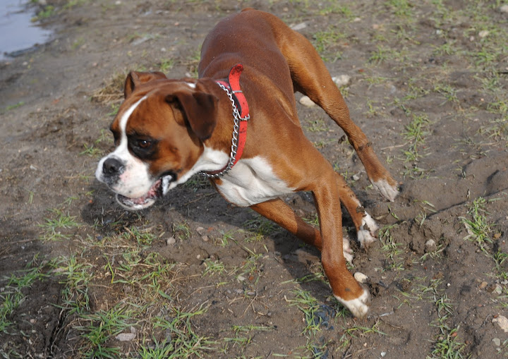 Ilmolachy Posted May 8, 2010 Author Posted May 8, 2010 po pierwszej lekcji ciap zaczyna kumać o co mi chodzi. Zaczyna... Z ringu wylecimy za zęby, chyba, że Ciap zmieni osobowość i pozwoli sobie w ryju dłubać zupełnie obcej osobie. Hantlerkę dziś dziabnął. Nie bo nie i już. a ćwiczyłam, za szczeniaka, domownikom pozwoli w ryju grzebać, obcym nie. I co mam zrobić? Nawret głaskać sie po głowie obcym nie da. Taki typ i już. a ja jestem głupia na przeglądzie technicznym u weta 3 dni temu dowiedziałam sie że pies jest w doskonałej kondycji, dziś się dowiedziałam, że - ma za duży łeb, nieproporcjonalny do reszty - jest za chudy - za mało umięśniony - i wygląda na 8 miesięcznego a nie 14 miesięcznego psa. - pani na bokserach się nie zna, ale takie jest jej zdanie. Na moje wyjaśnienia, o tym, że łeb boksia się zmienia do 2 lat dowiedziałam się, że to nieistotne. Pies jest nieproporcjonalny i źle wygląda, nie umie pokazać zębów i mam się głęboko zastanowić nad wystawianiem. Jedyne co robi dbrze to biega na luźnej smyczy ładnym kłusem. No chociaż to jak poza tym "brzydki, głupi i w ogóle beee" :/ Obok stał boksiu 4 miesiące starszy z głową mniejszą, węższy w klacie, 4 kg lżejszy ale proporcjonalny. na wzór dla mnie i ciapa. Dobrze że miał jajka, bo myślałam, że to sucz. No to paść go czy go nie paść? Trenować więcej , mocniej, dłużej, czy dbać o stawy? prawdę mówiąc to zaczynam zastanawiać się nad tym czy w tym pędzie rywalizacji ringowej nie zapominamy o tym, że one są nasze do kochania i tak najpiękniejsze na świecie. Bo mój jest najpiękniejszy i basta. Bo mój. co Wy o tym myślicie? Quote