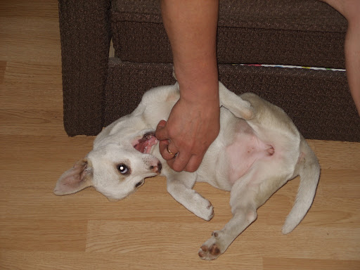 szprotka_89 Posted May 12, 2009 Author Posted May 12, 2009 co do pierwszej nocy to przespała u siebie w posłaniu ale drugą noc już spała w pokoju rodziców na kanapie :lol: już zaczyna pomału rozrabiać(spryciula ukradła z sklepie zoologicznym dwa smakołyki :cool3:) w domu i sie bawić:) już zaczyna pomału jeść i elegancko pije:) teraz borykamy się chodzeniem na spacery bo się boi i poza mieszkaniem boi się gdziekolwiek ruszyć. No i jest problem zostawania samej w domu... ale to jeszcze czas żeby sie nauczyć:) Quote