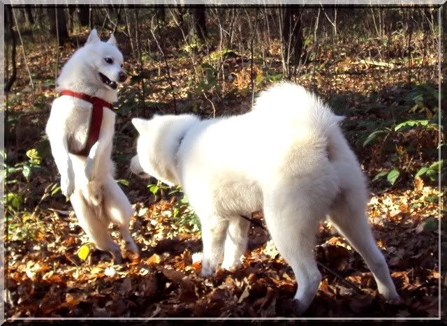 Angelika_Roser Posted November 14, 2010 Author Posted November 14, 2010 [FONT=Comic Sans MS]Śliczna pogoda więc byliśmy na spacerku :loveu: a potem spotkaliśmy białego Samiego :razz: i panowie się fajnie bawili :loveu: jak zdążę to wrzucę fotki, bo na rowerek z białasem idziemy :evil_lol: [/FONT] Quote