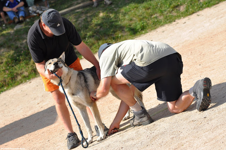 revii Posted November 22, 2009 Posted November 22, 2009 [quote name='Angelika_Roser'][FONT=Comic Sans MS]Bardzo dziękuję za linka. Napisano tam, że łapka mierzona jest do łokcia, ale przecież kończyna nie kończy się na łokciu, prawda? Może jeszcze ktoś się wypowie co sądzi na ten temat?! :lol:[/FONT][FONT=Comic Sans MS] Co do reszty bardzo fajnie pokazane[/FONT] :cool3: Łapa jest mierzona do łokcia, gdyż jest to najlepszy punkt orientacyjny. Wg anatomii powyżej jest kość ramienna (13) - do którego więc jej punktu należałoby przyjąć koniec łapy? ;) Dlatego mierzy się tak: [quote name='Shirai - Koki']Link jak najbardziej sie przydal, ale u mnie nie rozwiazla problemu mierzenia wzrostu, mierzyc trzeba z sierscia czy bez??? Jak najbardziej bez sierści, ten sam pies w zależności od kondycji (linienie, cieczka) może mieć różny włos, mierzenie z sierścią dawałoby możliwość "poprawienia" wymiarów psa - zbyt wysokiemu przyklepiemy, a za małemu natapirujemy ;) Jak to wygląda: Pies ustawiany jest tak, aby w miarę możliwości miał łapy ustawione prostopadle do podłoża (wystarczy, że przesunie ciężar ciała i już mamy psa niższego). Następnie trzeba wymacać gdzie też w futrze ukrył się kłąb (wysokość mierzy się w kłębie - najwyższym punkcie grzbietu): Po czym przystawiamy miarkę do obranego punktu i dociskamy tak, by oparła się dokładnie na psie, a nie na futrze (ale też nie dociskać za mocno, chyba, że chcemy na siłę obniżyć psa);) Wybaczcie, że pokazuję na wilczakach, ale tylko takie fotki mogłam znaleźć. Quote