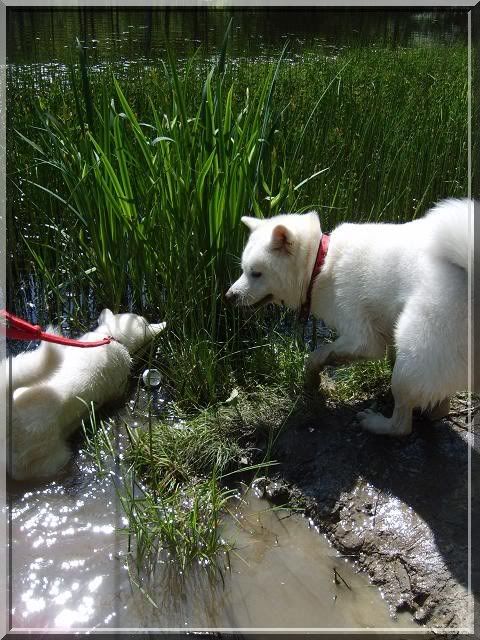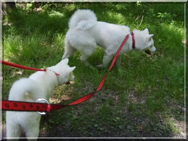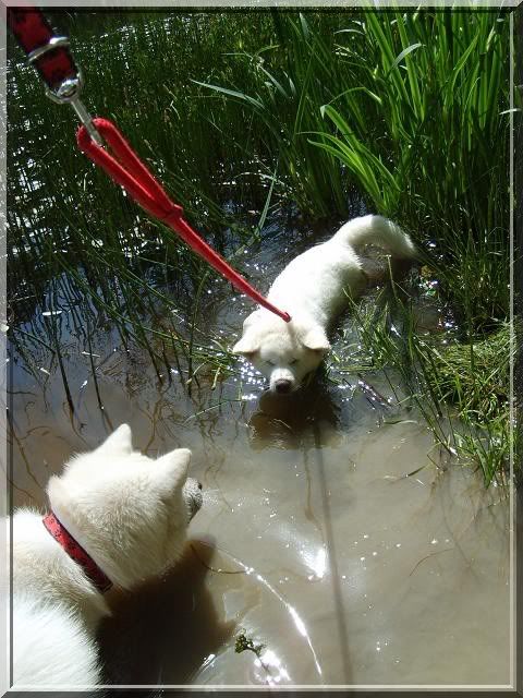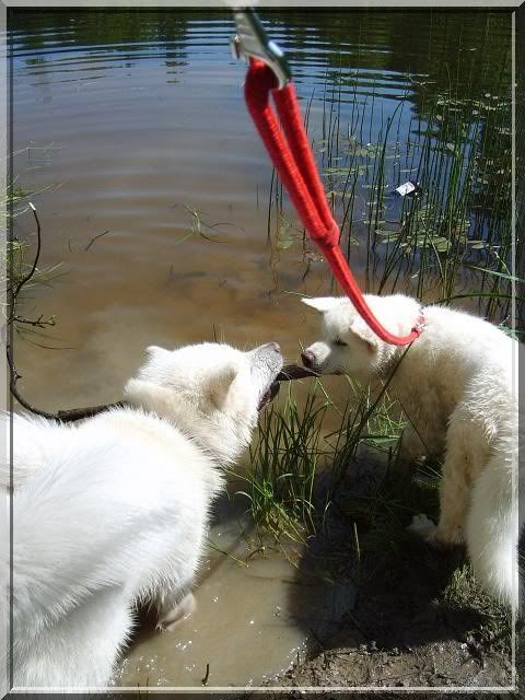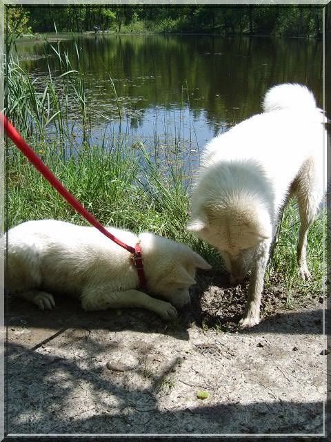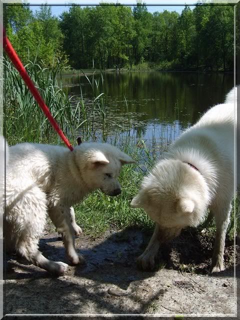 Angelika_Roser Posted May 28, 2010 Author Posted May 28, 2010 [FONT=Comic Sans MS]Poszliśmy na spacer do lasu a potem nad ślepotke w zamiarze miały się tylko napić i zmoczyć ewentualnie łapki, ale.... ciekawska Nasai poszła w zarośla... Gin nurkował po swojemu za patykAMI ( tzn ztoi w wodzie póki czuje dno i wtedy daje nura głową pod wodę :evil_lol:) [/FONT] Quote