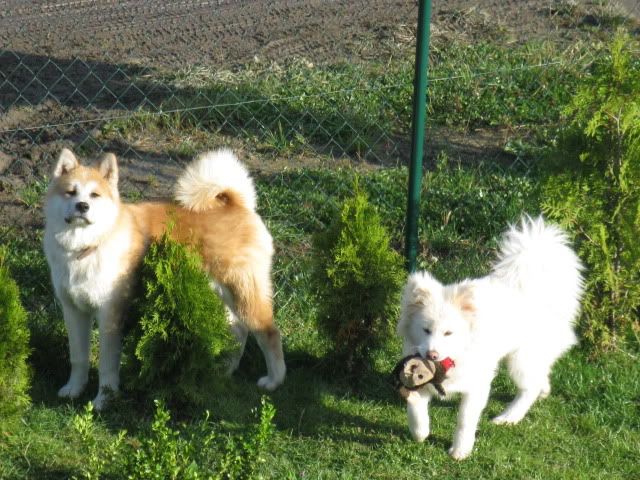 Kasia_Dawid Posted November 12, 2009 Author Posted November 12, 2009 Kateczka napisał(a):są zupełnie do siebie nie podobne:crazyeye: jakby inne psiaki :p panienka delikatna...a chłopak dostojny mężczyzna już:cool3: pozazdroscić takiej parki:loveu: racja :p Nasheńka, oprócz tego, że jest długowłosa, jest właśnie taka delikatna i drobniutka :loveu: charakterami też się różnią - Nashi to indywidualistka, jak kot chodzi swoimi dróżkami :p Natsu zaś taki przylepa, skacze, gania, często bardziej do nas garnie do domu aniżeli Nashi :p Nashi lubi długo spacerować po ogrodzie, obserwować :loveu:jak już jednak przyjdzie do domu, to podchodzi z zabawkami, by głaskać i bawić się. Oboje mają silny instynkt, by polować, jak to prawdziwe akity :p poza tym ganiają ze sobą, bawią się razem, szaleją :loveu: często Nashi goni Natsu, Natsu jest szybszy, ale Nashi kombinuje jak go dogonić i wymyśla skróty:-) zdecydowanie jest u nas wesoło :-) i na nudę nie narzekamy :-) Quote