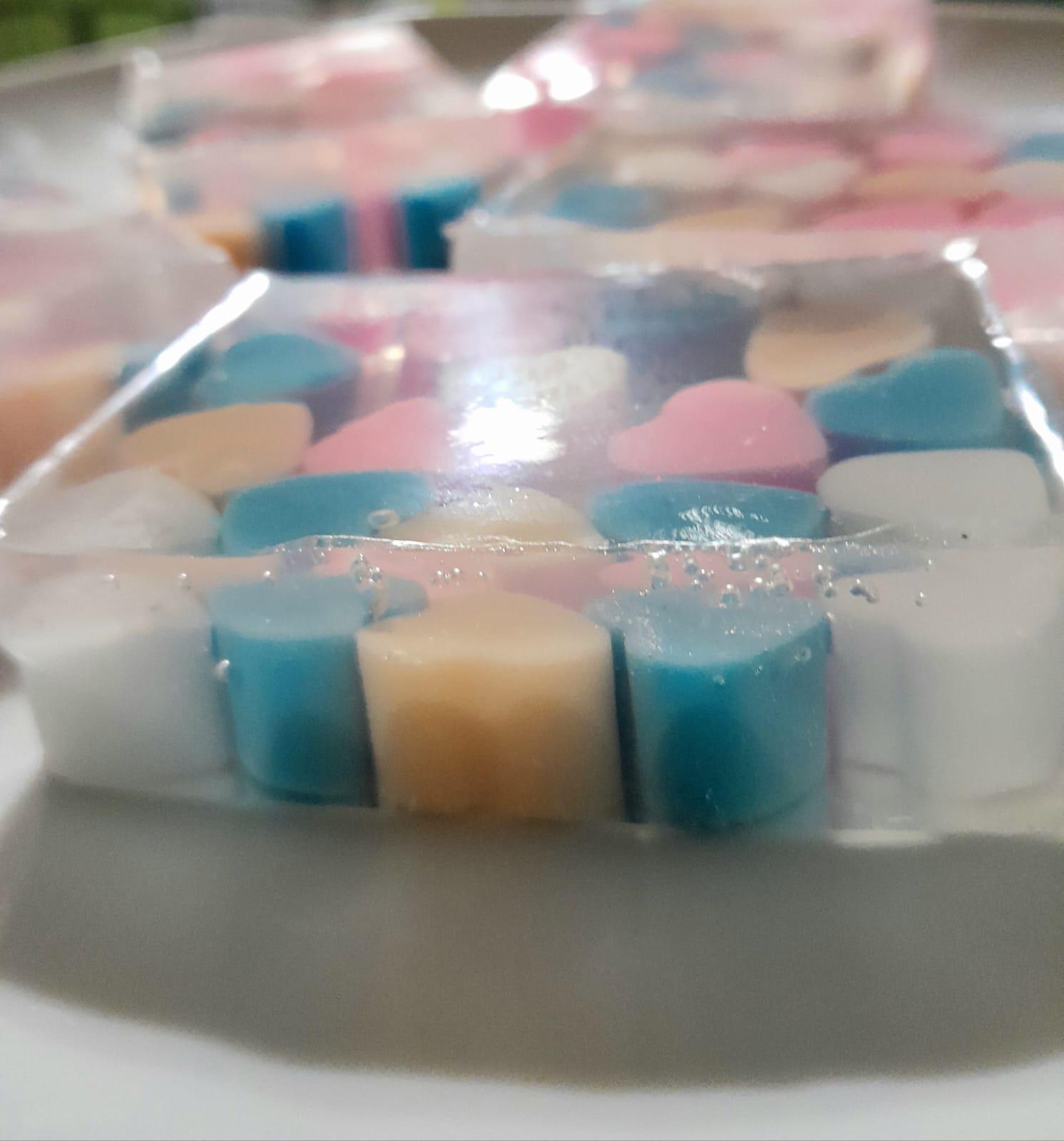 Jaaga Posted February 5 Author Posted February 5 5. Walentynkowe mydła z bazy aloesowej transparentnej z zatopionymi serduszkami. Aromatyzowane olejkami. Cena 1 szt. 11 zł. A. We fiolecie B. 1 szt. Pomarańczowo-różowe C. Zielono-fioletowe. 6. Jak wyżej, inne kolory. Baza aloesowa. 1 szt. cena KT 11 zł. Kupiła wszystkie 5 sztuk Onaa. 7. Cena KT 1 szt. 11 zł A. Pomarańczowe - 3 szt. B. niebieskie -2 szt. Quote