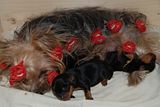 Mawe Posted March 31, 2011 Author Posted March 31, 2011 Dziękujemy za pochwały. Maluszki ładnie przybrały na wadze, Elik jest troskliwą mamusią. Najmniejsza urodziła się pierwsza suczka - 94 gr teraz 109, drugi był chłopczyk - 121 gr teraz 141, trzecia była panienka - 119 gr teraz 133. Myślę, że to całkiem dobre wagi po pierwszej dobie ich życia. Więcej zdjęć wkrótce. Quote