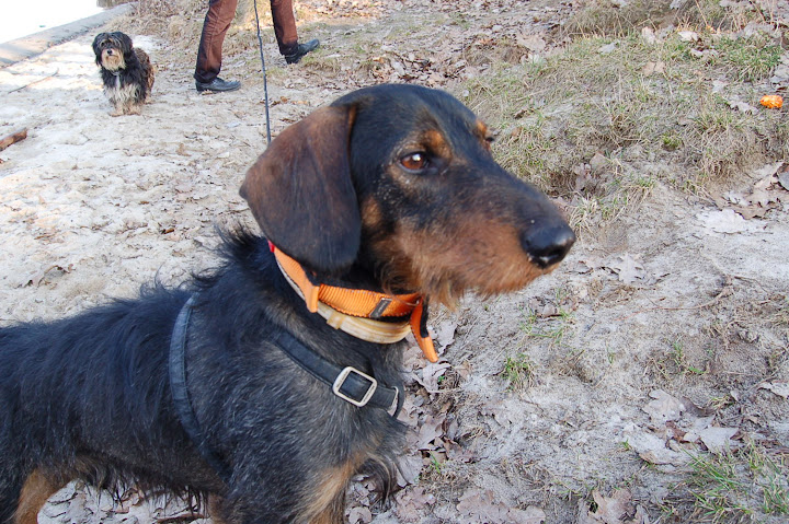E-S Posted April 3, 2010 Posted April 3, 2010 [quote name='Malwi']a co on taki poobwiązywany ? szelki 2 obroże .. nie za duzo tego ? :diabloti: Jedna obroża - przeciwkleszczowa, ta pomarańczowa obroża to adresówka wodoodporna i fluoryzująca jakby się wieczorem albo w nocy zgubił, tfu, on się nie gubi, on zwiewa za swą rudą ukochaną, albo za jakąś kaczką czy zającem, no i taki halt jest w tej obroży, tzn na tej obroży jest rączka, jak za to złapiesz - wysuwa się taka krótka smycz do przytrzymania psa na krótko jak jest potrzeba. Szelki - żeby go za szyjkę nie ciągnęło :) Smycz - 15 metrowa, treningowa - dla dobra innych stworzeń bożych nie spuszczaliśmy go dzisiaj, za dużo kaczek było, i tak jedną martwą wyciągnął z tych szuwarów, ja się pocieszam, że ona już była martwa a nie Bugi jej kark skręcił ..., jak krzyknęłam "zostaw" to ją zostawił. Dostał za to smaczka. Jak coś źle z nim robię to mówcie. Myszy też łapie: tak ganiał i się kręcił, że tylko jak wystawiał dawało mu się ostre zdjęcie zrobić: tu widać na obroży tą rączkę od smyczy krótkiej: wystawia (wtedy nie widzi, nie słyszy, nie czuje nic wokół, poświęca się zawsze jednemu i to całkowicie): Ewa Quote