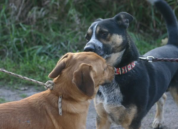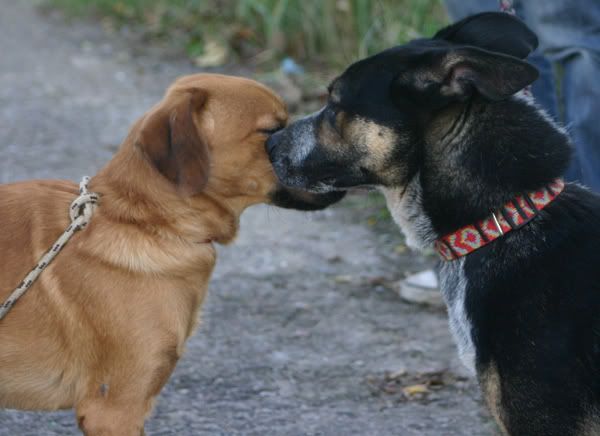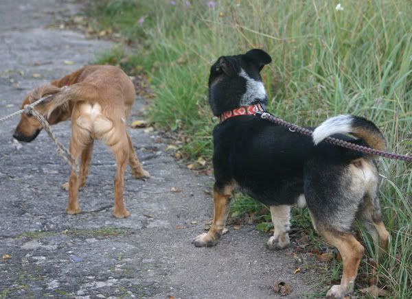 snuszak Posted October 9, 2009 Posted October 9, 2009 Dziś Kapsel był na spacerze, będą fotki :multi: Obróżkę zostawiłam na stałe aby nie było później problemów. Na spacerku był z Kirysem, dogadały sie 2 młode wariaty, z tym że na początku chodziło o zabawę z czasem Kapsel zaczął sie zalecać do Kirysa. Chłopak ma taki temperament że dobrze by go było ciachnąć :roll: A ogólnie psiak cudo, zabawa całą parą, no i ktoś wysportowany by się mu przydał :diabloti: Quote