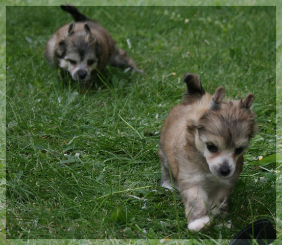 miniaga Posted August 26, 2009 Posted August 26, 2009 Moje 6 tygodniowe maluszki (mieszkam w bloku) na spacerku! Jeśli dla kogoś socjalizacja jest ważna to brak ogrodu nie jest przeszkodą. Trawnik w Warszawie uczęszczany tylko przez moje szczeniaczki. Miłym panom z ochrony serdecznie dziękuję za ten przywilej. Po za tym moje malce mają do dyspozycji jeszcze trawnik przykościelny dzięki uprzejmości księdza proboszca:loveu: i boisko szkolne, ale tutaj już na uprzejmość ciecia liczyć nie mogę:evil_lol: i bawimy się z nim w kotka i myszkę. Malce zaliczyły już 2 razy jazdę autem, w tym na działeczkę do Teściowej, gdzie również się wychasały. Mieszkanie w bloku wymaga od nas kreatywności, ale inaczej wygląda spacer, gdzie dziś mineło nas z 30 osób, każdy przystanął i przez kraty porozmawiał z nami, dzieci pogłaskały maluchy, było sporo różnych dźwięków a inaczej spacer na ogródku gdzie się widzi własne stano i rodzinę u której mieszka. Quote