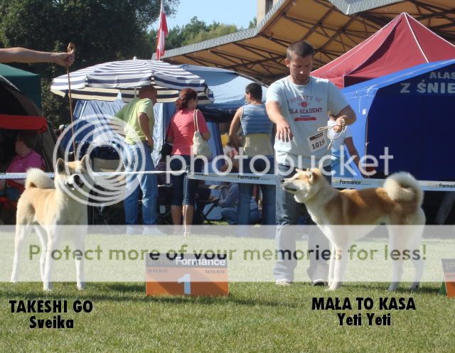 Agappe Posted August 30, 2009 Posted August 30, 2009 to ja tak na szybko wyniki.. może potem ktoś uzupełni sędzia: Tibor Havelka (SK) Akita (11) PSY Klasa młodzieży - 2 1009 - 1010 ATARI-GO TSUGI Namitori - oc.doskonała, lokata II ATSUDE GO Sensakura - oc.doskonała, lokata I, Zw.Mł., NJwR Klasa otwarta - 2 1011 – 1012 BAKUHATSU Halne Wzgórze - oc.doskonała, lokata II TENKEITEKI Halne Wzgórze - oc.doskonała, lokata I, CWC, CACIB, NDPwR Klasa championów - 1 1013 OKII Matagiinu PL - oc.doskonała, lokata I, CWC, res.CACIB SUKI Klasa szczeniąt - 1 1014 MAI SFORA Z KRASNEGO BORU - oc.wybitnie obiecująca, lokata I, NSzwR Klasa młodzieży - 2 1015 - 1016 ADEYAKA GO Sensakura - oc.doskonala, lokata I, Zw.Mł. AKASHIA GO Sensakura - oc.doskonała, lokata II Klasa pośrednia - 1 1017 MAŁA ONA TAKA Yeti Yeti - oc.dobra Klasa otwarta - 2 1018 - 1019 MAŁA TO KASA Yeti Yeti - oc.doskonała, lokata II TAKESHI GO SVEIKA - oc.doskonała, lokata I, CWC, CACIB, NSwR, Zw.Rasy zdjęć moich dziś na pewno nie będzie.. pewnie dopiero już po czwartku Quote