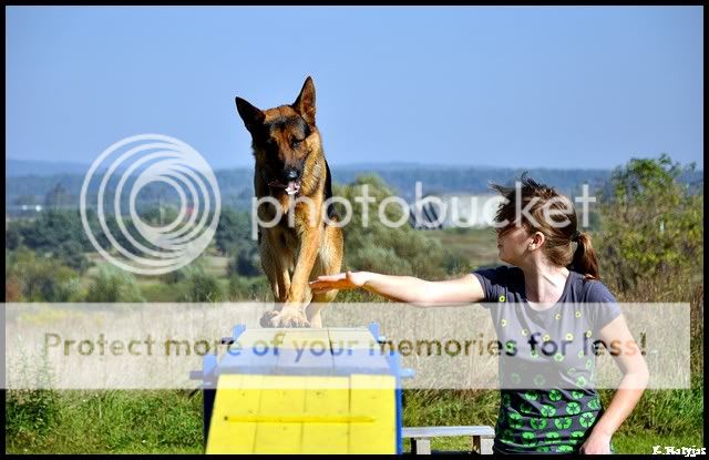 sator_k_ Posted September 26, 2010 Author Posted September 26, 2010 No po prostu muszę się tym z kimś podzielić. :eviltong: W tą sobotę ćwiczyłyśmy z Kasią rzuty dyskiem tz. rzucałyśy do siebie. Dzisiaj jak zwykle w okolicach wieczornych bawiłam się z Satorem frisbee. Do tej pory biegał za rollerami (które wychodzą mi już coraz lepiej :)), ale nadal częściej wpada na dysk niż łapie go w biegu choć on tez jest już w tym co raz lepszy ;). Oprócz tego wyskakiwał do dysku z ręki i do pokracznie rzuconego floatera i łapał dysk w większości przypadków. Dzisaj postanowiłam wypróbować to czego nauczyłam się w sobotę. Najpierw rzuciłam dysk oczywiście za daleko i Sator nie złapał, ale potem juz sie poprawiłam i co? :multi:SATOR ZŁAPAŁ RZUCONY DYSK W POWIETRZU! :multi: Z trzech prób udane mieliśmy dwie. Potem już nie rzucałam, bo stwierdziłam, że dobrze zakończyć miłym akcentem. Niedługo ma nam dojśc CS i już nie mogę się doczekać żeby go wypróbować. A co najważnejsze, Sator chyba polubił zabawę z frisbee:multi:, bo ogonkiem macha na jego widok i do tej pory jeszcze nigdy zabawy nie skończył. To ja muszę chować dysk.:diabloti: Quote