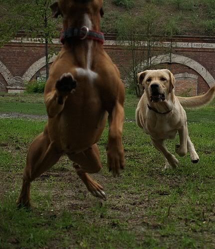 Maga100 Posted August 14, 2006 Author Posted August 14, 2006 a tu Szpila zamierzała wskoczyć mi na głowę :lol: jakiś raróg mu wyrósł na głowie :evil_lol: mój pies tak nie biega :crazyeye: Quote