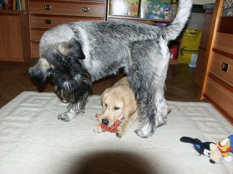 Maga100 Posted June 4, 2005 Author Posted June 4, 2005 Ja też tak się staram robić. Niestety, tak gdzie Leonek może pohasać bez smyczy jest też zawsze pełno dzieci... A tu jeszcze znalazłam Leona Wściekłego :D z kolegą Guciem To było dobry miesiąc temu, teraz Leon dorównuje wzrostem Guciowi Quote