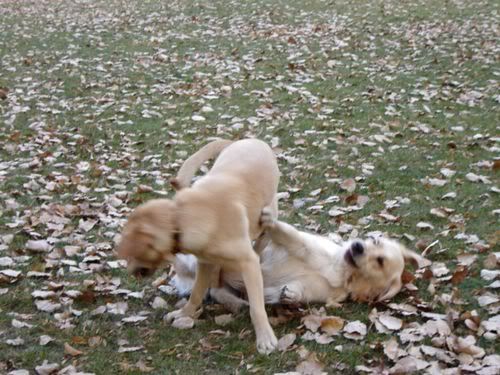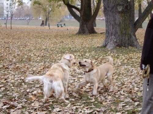 Maga100 Posted November 2, 2005 Author Posted November 2, 2005 Dziekujemy wszystkim :oops: 8) Leon jak mnie widzi z aparatem w ręku, to wzdycha zrezygnowany :lol: Ale dzisiaj przegiął :evil: Gdy się bawił z ta goldenką, to podbiegł bokserek, a Leon zamienił się w lwa, ryknął, najeżył i chciał się rzucić :evil: Pierwszy raz odwalił mi taki numer, dobrze, ze zareagował na komendę do mnie :-? Quote
