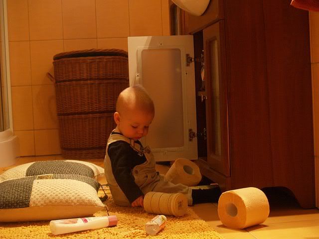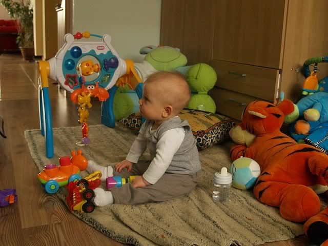 Maga100 Posted April 3, 2010 Author Posted April 3, 2010 [quote name='Alicja']o kurde ....zasuwa jak ruski samochodzik ;):multi: niesamowite jest to, że siedział, siedział, siedział, a padł na brzuch to wrzeszczał jak opętany i nagle... nagle poszedł :p Minał kolejny dzień i już prawie nie ma zająca, a zaczyna być prawdziwy czworak. Co oczywiście nie przeszkadza mu chcieć ciągle STAĆ i chodzić - z moją pomocą oczywiście. [quote name='Justa'] A jednak zdecydował się raczkować, a nie od razu biegać :p No to skończyło się spokojne życie, czas na ściąganie z szafek, stołów, regałów, półek, stołków i innych :diabloti: rozglądam się po swoim domu i dochodzę do wniosku, że Tadzio nie przeżyje, gdy puszczę go samego :diabloti: I DLACZEGO interesują go tylko kable, piloty, komórki i szklane naczynia? :shake: [quote name='Hanna R.']Dziękuję Ci Magdaleno - czuję się wyróżniona :grins: . czuj czuj czuwaj :diabloti: [quote name='Tengusia']szkola i doszkalanie brzmi bardzo rozsadnie musze rozejrzec sie w tej mojej miescinie gdzie mozna cosik takiego znalezc :PROXY5: a jestem z Katowic :p no tak, zobaczyłam w opisie. Jakbyś była z Warszawy, poleciłabym ci taką szkołę jazdy, że po miesiącu ruszałabyś na tylnej gumie, a hamowała tylko na przedniej ;) Poniżej, specjalnie dla Debe - bo tylko ją to może ainteresować :diabloti:, kolejne postępy Tadeusza. Na pierwszym - że poruszanie się bywa jednak trudne i bolesne, a ciało ciężkie do opanowania, a na drugim - bieg do przedmiotu pożądania - czyli komórki - i końcowa wściekłość, że się nie udało Quote