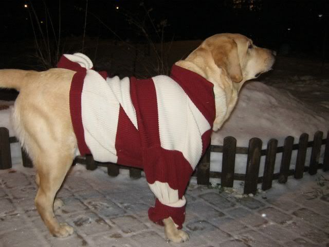Maga100 Posted December 27, 2010 Author Posted December 27, 2010 [quote name='anetta']A czemuż to? Moja bratanica też ma górkę zrobioną w ogródku i zabawa jest przednia :lol: a temuż, że tata górkę zrobił za wąską i co drugi raz Tadeusz ląduje twarzą w śniegu, a sanki na nim :evil_lol: Leon nie chce zostawac w domu. Chce w ogródku. Ocieplaną budę ma w głębokim poważaniu. Ponieważ do -5C nie mam obiekcji, to zostaje, ale gdy jest zimniej... :shake: No niby ex-szkoleniowiec Leona powiedział, że labradorom przebywającym duzo na dworzu robi się taki podszerstek, że nie czują chłodu, ja mam obiekcje... Trzy razy zostawiłam Leona w srodku, ale musiałam stoczyć z nim walkę w wiatrołapie, tak dramatycznie chciał wyjść na dwór... W Święta znalazło się rozwiązanie.... :evil_lol::evil_lol::evil_lol: Po powrocie, po kilku h spędzonych na mrozie (ma posłanie na ganku i kilka wartsw koców) Leon był ciepły jak bułeczka A tu mu się rękawek odwinął :lol: Quote