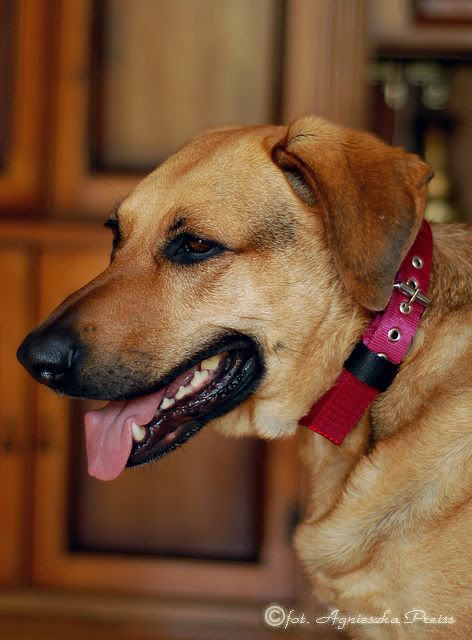 kasia_1982 Posted April 30, 2010 Posted April 30, 2010 odblaskowa obroża od Taks, fioletowa ale mój aparat przekłamuje kolory ;( Quote