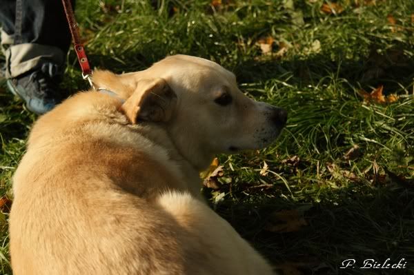 Pinesk@ Posted October 21, 2009 Author Posted October 21, 2009 Post 1 zaktualizowany o nowe zdjęcia :) Pazurek był dziś na spacerku. Cieszył się kiedy zobaczył mnie ze smyczką, radosny był, że wychodzi. 5m od schronu i zaczął ciągnąć spowrotem w stronę azylu. Ale nie poddałam się, wołam " chodź Pazurek, będzie fajnie, chodź ze mną" i takie tam bajery mu wciskam ;) No i poszedł! :multi: Trochę się bał na początku, kulił się i był baaardzo ostrożny, oglądał się na schron. Potem nawet sam z własnej woli do mnie podszedł, później biegał ze mną, cieszył się, nawet brzuszek do głaskania wystawił :cool3: Chciał być blisko mnie, pakował się pod nogi. Wystraszył się strasznie przejeżdżającego pociągu. Fajny chłopak z niego :) Ale jak już wracaliśmy do schronu to ciągnął niesamowicie- tam się czuje pewnie i bezpiecznie. Quote