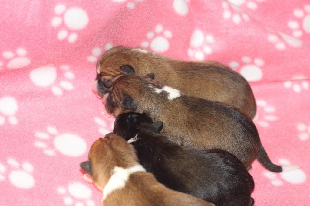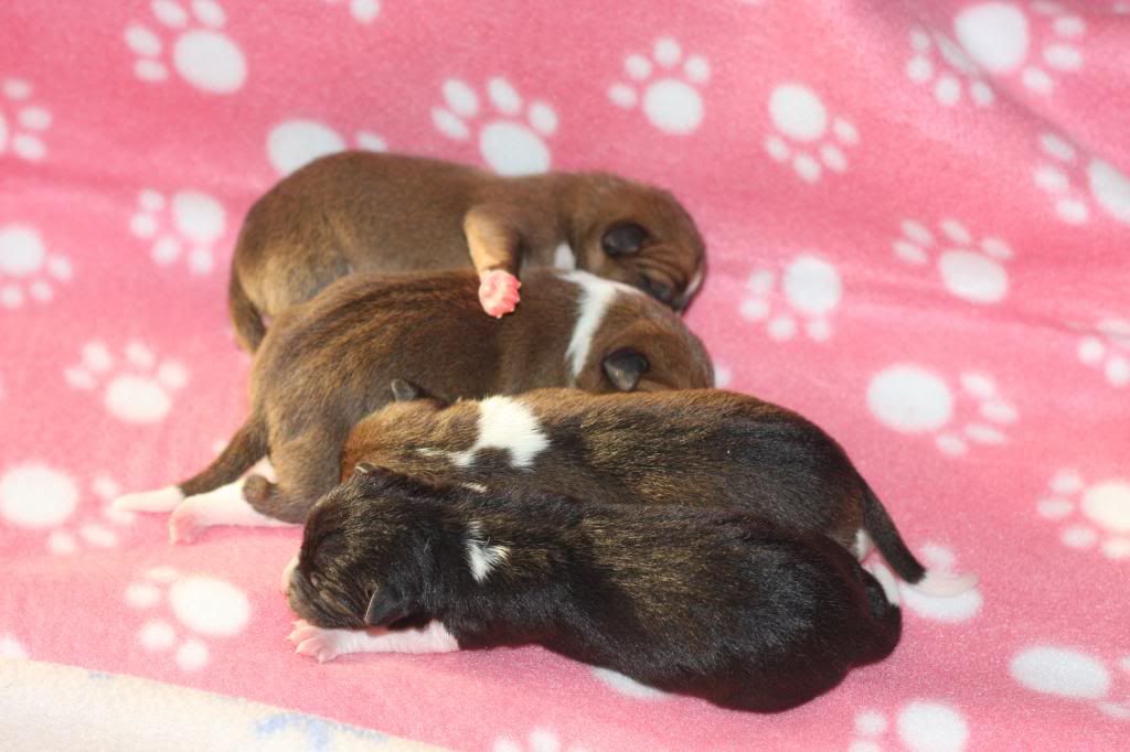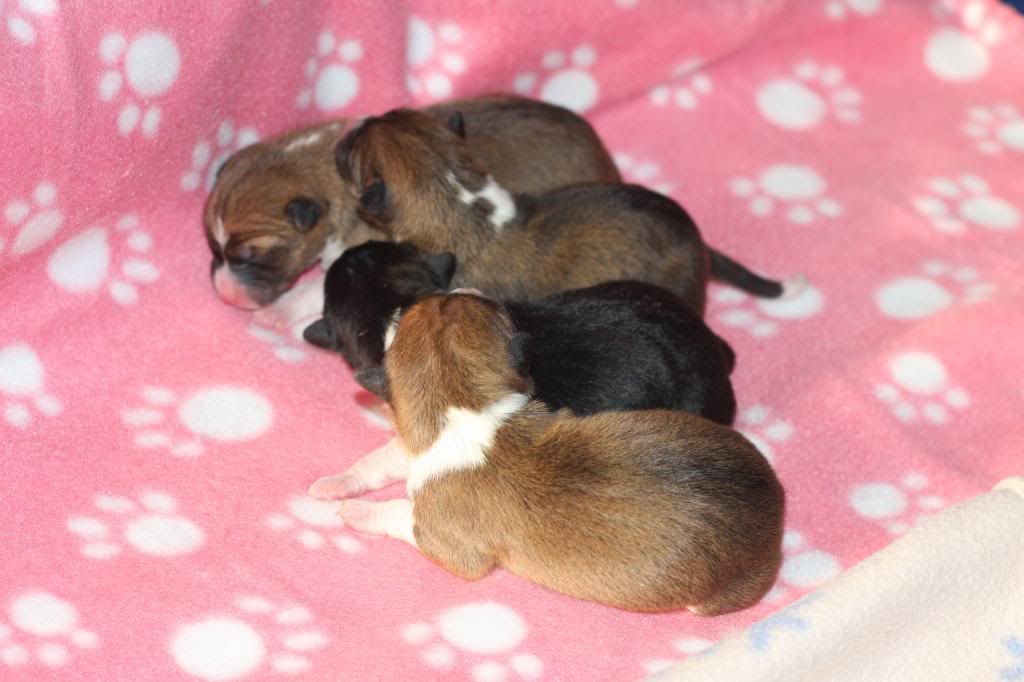 Asiaczek Posted November 30, 2012 Author Posted November 30, 2012 A oto cała Czwórka urodzona 28.11.2012 r. Tatus to Serek, a mamcia - Żelka:) Same dziewuchy, 3 rudo-biale i jedna - tri:) Sunie ułożone wg kolejności przychodzenia na świat, patrzac od góry:) Pzdr. Quote