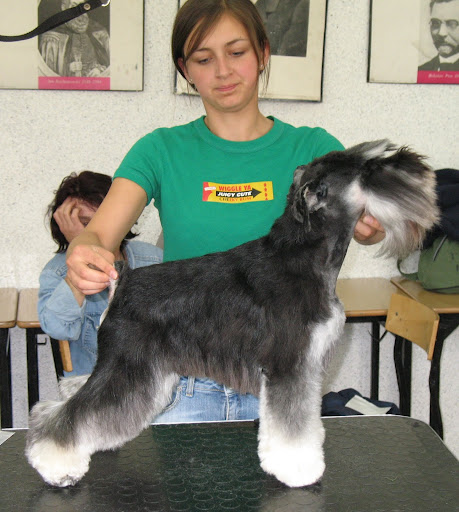 Tiesto_kennel Posted September 14, 2010 Posted September 14, 2010 Odnośnie stołu i linki to z moimi psami nie mam kłopotu bo one stoją jak zaczarowane, ale jak mam psiaki młode na stole musze pilnować ewentualnie zakładam zwykłą ringówkę, bo faktem jest że gumeczka ściągająca na orginalnej lince jest licha :/i bardzo łatwo się podnosi do góry, przez co pies może cofnąć i wyciągnąć głowe :/ Doginka jak dla mnie broda jest idealnej długości, tylko Sheridan odwrócił troszkę głowę w strone obiektywu stąd wygląda cała głowa na większą a co za tym idzie na cięższą. inna fota To fakt że takich sznupków do robienia jak na lekarstwo ale ja nadrabiam swoimi :D albo z polecenia od znajomych hodowców Wrzucam jeszcze jedną fotę z konkursu strzyżenia z Ostrowa Wlkp. który był przy okazji Specjalistycznej Pudli. (2006 ?? ) Kategoria trymowanie - do wystawy Quote