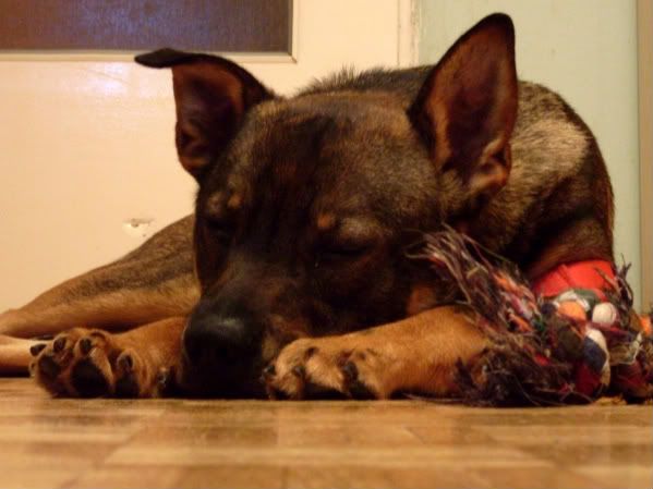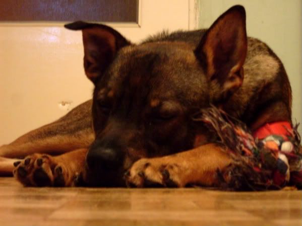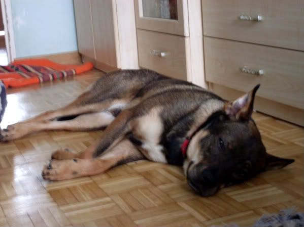 mru Posted October 26, 2009 Posted October 26, 2009 Od wczoraj jest u mnie Hazmat zwany także Synkiem :) chłopak jak na razie wczoraj zapoznał się z resztą towarzystwa z Gackiem okej, on to omija "nowych" a potem zaczyna się z nimi bawić :cool3: ze Skrzekiem to w ogóle zero problemu (Skrzek jest głuchy i ślepy i nie wiem, czy w ogóle się zauważyli hihi) natomiast Diego wciąż na Hazmata warczy :diabloti: i stara się mu pokazać, kto tu jest szefem (mimo, że Diego szefem nie jest...:roll:) Hazmat za to zgrywa głupa :eviltong: i stara się pokazać, że on nie chce przejąć kontroli tylko się bawić (wtedy Diego głupieje totalnie :-o bo nie umie się bawić z nikim innym oprócz ludzi i Gacka) Hazmat spać nie mógł i co chwila wstawał i mnie nosem dotykał i powalał zapachem ;) a że u mnie w pokoju śpią jeszcze Diego i Gacek (obaj na łóżko oczywiście ze mną wskoczyli, żeby pokazać kto tu gdzie śpi hihi) to wtedy Diego zaczynał warczeć i ja przez sen musiałam mówić "feeeee..." za bardzo się nie wyspałam, bo Hazmat stwierdził, że on o 5 rano zacznie się bawić :roll: i rozbijał mi się po pokoju. A ja się przeraziłam, że nasika (bo wczoraj sikał), więc z nim wyszłam ;) on na spacerze jest wyjątkowo grzeczny! wczoraj właśnie jeszcze nam całe mieszkanie obsikał (chyba z emocji), ale dziś będę miała neutralizator :cool1: rano nie było nasikane ;) na szczęście - ani nic innego nie było ;) dziś znaczył kręcąc się z Diego po przedpokoju :eviltong: więc jak najszybciej trzeba mu jajka ciachnąć i myślę, że potem już będzie do adopcji :) ponieważ to bardzo fajny psychicznie pies może nie jakiś piękny (chociaż mi się podoba, szczególnie z twarzy:eviltong:), ale nadrabia usposobieniem od razu wszystkich kocha, nie jest agresywny (ulega nawet Diego hihi a Diego jakiś groźny to nie jest i straszna lękliwa ciapa z niego) na spacerze jest bardzo grzeczny! aż dziwne :) prawie nie ciągnie, nie okręca smyczą drzew ani nic ;) no i muszę się spieszyć z adopcją, bo u mnie ciasno :roll: Przypomnę tylko, że Hazmat to pies, który znaleziony został w Regułach w styczniu tego roku. Pan, który go znalazł wziął go do siebie, ale ponieważ jego pies-rezydent nie akceptował nowego - spróbował oddać Synka swojej mamie. Jednak Synek jest młody, żywy i mama sobie nie dawała rady. Wtedy orpha poprosiła Pawła, żeby ten pomógł panu albo "dogadać psy" albo pomóc z Pan zadzwonił, umówiliśmy się i już byliśmy niemal w drodze... kiedy pan znów zadzwonił, żeby powiedzieć, że już nie trzeba przyjeżdżać, bo on oddał psa do schroniska... a teraz pierwsze foty: a tu Synek w styczniu: Quote