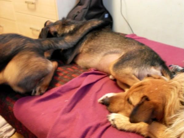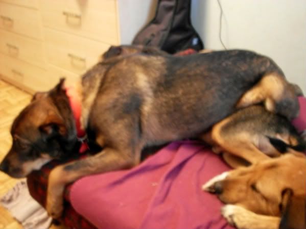 mru Posted October 26, 2009 Author Posted October 26, 2009 a teraz historyjka... :cool1: moje psy okupowały łóżko, żeby nie było, że przybłędzie wolno na nie wejść :cool3: ale przybłęda stwierdził, że wolno mu i wszedł :eviltong: nie było za dużo miejsca, więc położył się... na Gacku :evil_lol: oto dowody: ale chyba było mu niewygodnie, bo zaraz zszedł ;) Quote