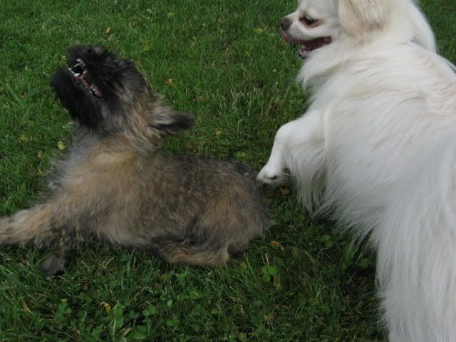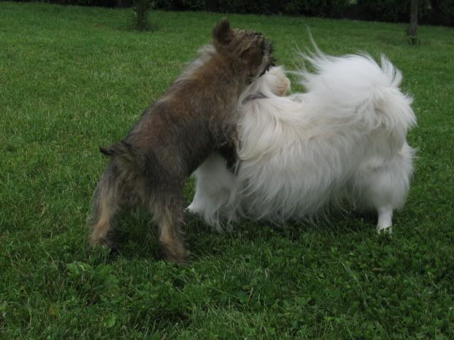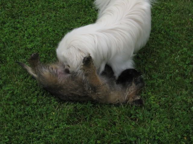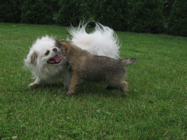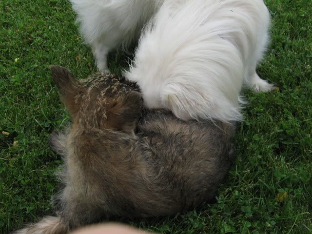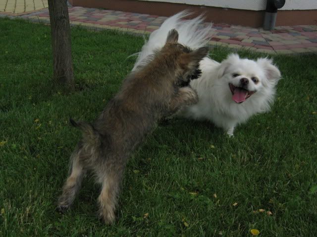 McDzik Posted July 8, 2009 Posted July 8, 2009 Dziś Arni zapoznał się z tym panem-Cairn terier -SIMBA :loveu: Porobiłam około 100 zdjęć, wstawię kilka bo reszta podobna albo psy w szale zabawy odwrócone. Zabawom nie było końca: ...i szaleństwom: Skok z zaskoczenia w wykonaniu Simby! Haaa, złapię Cię !!!! c.d.n. Quote