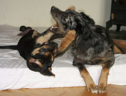 Glutofia Posted November 27, 2009 Author Posted November 27, 2009 Stałam się obiektem drwin ze strony znajomych tudzież fundacji ze sobie z małym gnojem poradzić nie mogę. Proszę niech ktoś weźmie ode mnie Fajdzia na jeden dzień. Dzisiaj była Aneta przez 10 min co Fajdzio dopiero wstał i był zaspany i kategorycznie stwierdziła ze w zyciu do domu zmałymi dziećmi. Toż mówię od samego początku ze potwór i bandyta to tylko się śmieją i nie wierzą. Fajdzio gdy chcę go przytrzymać choćby po to by założyć szeleczki potrafi ugryźć. I to nie w zabawie. Złapany za skórę na karku- gryzie. Tyle ze juz go wywrócę na grzbiet bo wcześniej się nie dał, szarpał się zawzięcie wył i gryźc usiłował. Szkuci, nie da się go pogonić jak zarobi ścierą w łeb to schowa się w kącie ale tylko po to by po chwili z niego wyskoczyc i upierd..w kostkę. Jak długo żyję tak mi sie nie zdażyło zeby pies mnie nie słuchał i nie szanował. Brygida ma go serdecznie dość taryfa ulgowa sie skończyła. Dzisiaj omal mu głowy nie odgryzła sądzicie ze się przejął? Amikat stwierdziła ze jej suka dawno by go zeżarła a Brygida to anioł w psim ciele. Wczesniej się martwiłam ze ktoś w nowym domu będzie na okruszka krzyczał...bosh..ja tu ściera i po łbie bandytę. Nie szanuje moich psów. Brydzi śpi o się rozpędza wykonuje skok i ląduje na jej głowie jak ta go ofuknie to się stawia. Hiena ciągnie za ogon. Nie chcecie małego potworka?? Słodziutki jest Quote