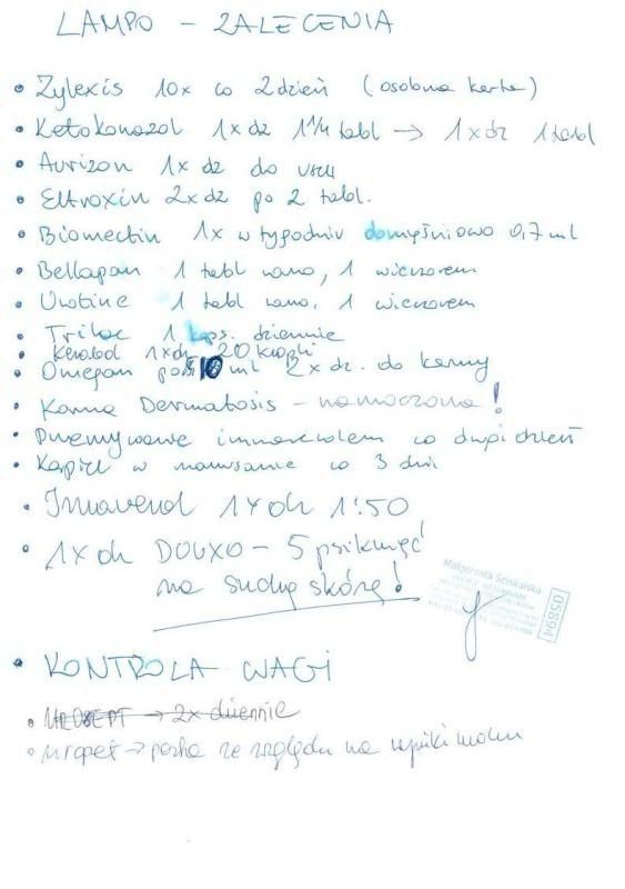 asiaf1 Posted October 3, 2010 Posted October 3, 2010 a czy każdy może na tę stronę wstawić dowolnego psą? Wiecie może jaki jest odzew w sprawie adopcji? Lampuś poczuł się juz w nowym dla niego domu bardzo dobrze. Wczoraj byłam z nim na kolejnej dawce Zyleksisu (mam nadzieję, że dobrze to napisałam) W klinice dostał 10 dawek tego leku na wzmocnienie odporności. Teraz mam dostawać raz w tygodniu. Ładnie je, kupy tez ładne. Czeka nas jesszcze badanie moczu gdyz miał problemy z pęcherzem i no i jeszcze kontrolne badanie krwi ale to za jkiś tydzień. Kupiłam mu wczoraj miski na stelażu, żeby nie musiał się tak schylac do ziemi jak je. 2 dni temu nasz bohater złamał dietę. Jego opiekunka wróciła z zakupów i zostawiła wszstko na stoliku i wyszła na chwilę do córki. Jak wróciła to wszystko było na ziemi -zniknęła w tajemniczy sposób kiełbasa i szynka :-) Chleb leżał już na kanapie gotowy do konsumcji:-) Quote