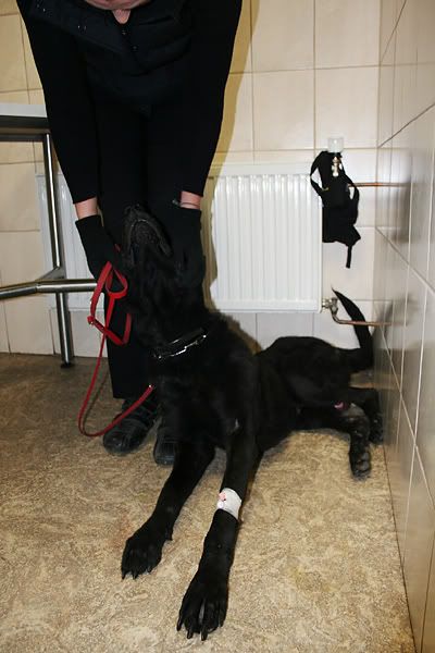 Wybudził się bez problemu. Odebrałam go po 21 i jeszcze musieliśmy czekać na wolnego lekarza, który "wypisze" Werona. Wszyscy w gabinecie powtarzali, że to jest po prostu niesamowity pies, że ma wspaniały charakter. Skomlał i żalił się, ale dr Czyż powiedział, że chwilę z nim porozmawiał i już było ok Zresztą z najlepszej strony pokazał się już podczas oczekiwania na zabieg, zarówno w poczekalni, jak i w gabinecie. Daje przy sobie robić dokładnie wszystko, nie sprzeciwia się, jest cierpliwy, spokojny i wyrozumiały. Wystarczy powiedzieć "dobry", a ogon Werona wprawia się w ruch i obstukuje wszystko dookoła.