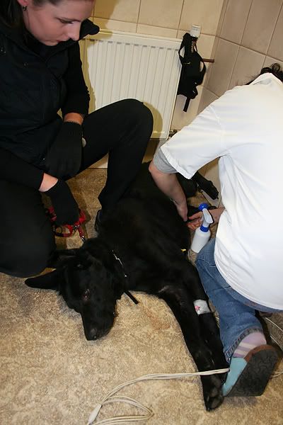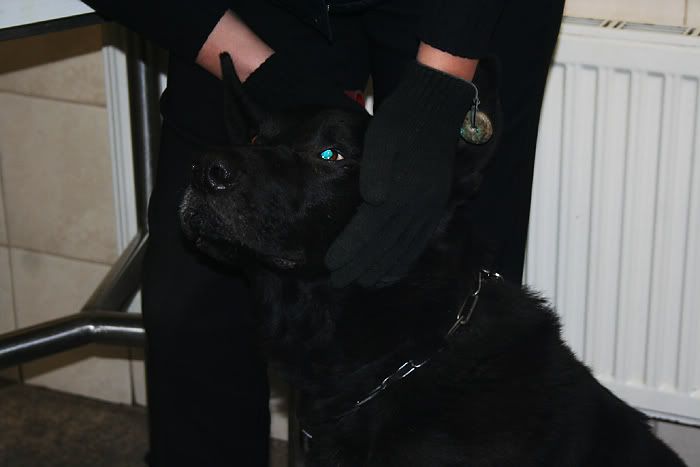 trzymałam go za pyszczek, ale nie było to koniecznością, nie miał uchoty urąbać weterynarzowi ręki.