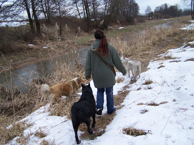 Romka Posted March 2, 2010 Posted March 2, 2010 Lisa chodzi za mną krok w krok. Przylepiona do mojej nogi jakby była do mnie smyczą przywiązana. Wszędzie zagląda i wszystko musi nosem dotknąć :) Rano wyglądam przez okno a tam tata chodzi po podwórku a za nim wycieczka trzech psów a za nimi moja kicia Figa pomyka :) Ku mojej uciesze to mnie Lisa uważa za swojego przywódce. Gdzie ja tam i ona. Dziś jej pierwsze spotkanie z koniem biegającym po podwórku. Była taka podniecona! Obszczekała Balbinę(koń) ale jednocześnie się bała jak tylko Balbina zaczęła brykać wszystkie trzy pędem wskakują do kojca przepychając się kto pierwszy. Koda z Ursą wiedzą już co znaczy zadrzeć z koniem i jego kopytem a Lisa przeczuwa że to nic miłego:) Jest fajnie. Pierwsze zderzenie z kozimi rogami też już za nią, kozie nie spodobało się że ją coś tak obwąchuje i podgryza i bach! Zdziwiła sie mocno lisica i obszczekała kozuche z dwumetrowej odległości. No cóż każda koza jest inna i niektóre się boją psów inne lubią psy a jeszcze innych to psy powinny się bać. Czekam na pierwsze wyjście na pastwisko całego stada. To będzie przeżycie dla Lisy:) Listonoszka jest przeszczęśliwa z kolejnego dużego psa, który ją obszczekuje i na podwórko nie wpuszcza :) Muszę teraz zdobyć "trójpalczastą smycz" coś na kształt kurzej łapki bo z trzema osobnymi smyczami to można zostać spętanym jak wielkanocna szyneczka:) I następna relacja z domku Riki-Lisy.Czytajcie! Quote