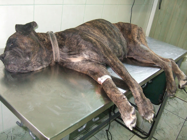 Bolsbokser Posted January 14, 2010 Posted January 14, 2010 Kopiuję z Boxer Forum Czegoś takiego nie widzieliśmy już od dawna... Sunia - szkielecik, zgłoszona przez panią, która przez kilka miesięcy karmiła ją, po śmierci jej właściciela. Figa ma zaawansowaną chorobę skóry - jest prawie łysa, ma opuchnięte łapy, skóra na brzuchu przypomina raczej słoniowatą skorupę. Nawet weterynarz, który już nie raz pomagał naszym podopiecznym, na jej widok złapał się za głowę. Na szczęście znalazła się dobra dusza, która przyjęła ją tymczasowo pod swój dach, mimo, że ciągle trzeba ją kąpać i smarować, by ukoić potworny świąd i podleczyć schorowane ciałko. Bardzo prosimy o pomoc w leczeniu i utrzymaniu Figi. Więcej informacji na stronie SOS bokserom Quote