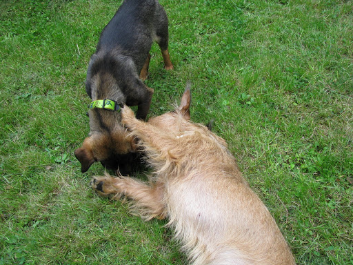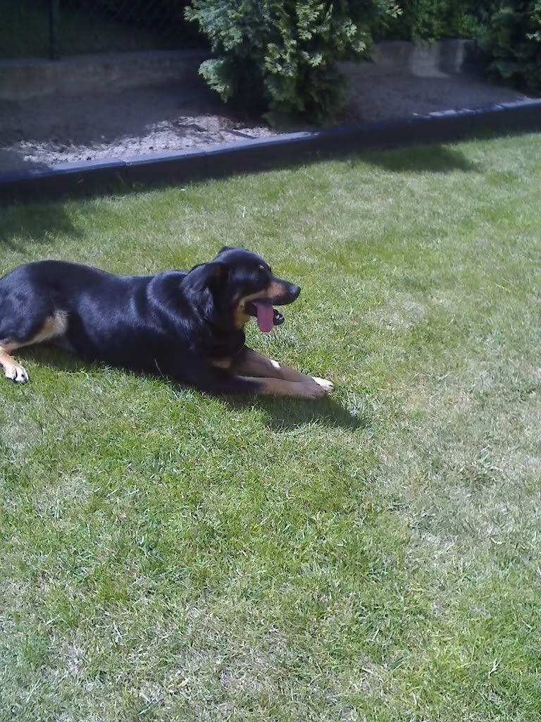 brazowa1 Posted September 23, 2008 Posted September 23, 2008 jeszcze raz dam Wigora,bo dziś dostałam nowe fotki :) Ano Wigor spedził w schronisku 9 lat,od szczeniaka.Przez 9 lat "wisial" na murku pod sufitem,tam byl jego punkt obserwacyjny i tym na stale został legenda schroniska. A teraz? zostal domowym,naziemnym psem i co mu zafundowali??? KOTA! dostal nachalna narzeczona,do tego duuuzo od niego młodsza :evil_lol: widzicie to samo,co ja? ta kocica go przesladuje! Quote