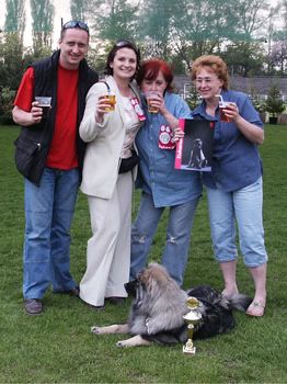 Eurasierka Posted May 10, 2006 Author Posted May 10, 2006 :cunao: mamy piękne postępy :multi: - ostatnie doświadczenia z łódzkiej międzynarodówki - co prawda parę razy trzeba było Sabrusi przypominać o ogonku :P - ale ogólnie mała była w świetnym humorze, i to było widać :lol: - ogonek na ringu dumnie w górze a teraz foteczki: *bezpiecznie w namiocie... *przed ringiem *ząbki *trochę ruchu dla zdrowia... *pierwsze koty za płoty... statyka *po porównaniu do BOB: (***) /tutaj powinna być jeszcze druga fotka - dokumentująca, co wyprawiałam z małą na ringu, gdy dostaliśmy Zwycięstwo Rasy - ale nie wstawię w obawie przed TOZ i oskarżeniem o molestowanie zwierząt.../ :eviltong: *walczymy o wyjście z V grupy: *konsumpcja oranzady jako toast za udane spotkanie: od lewej: TZ, ja, Matagi oraz Dorota - nasza hodowczyni u naszych stóp legło moje futrzaste szczęście ___ MATAGI - jeszcze raz dzięki wielkie :calus: za: 1. :motz:- czyli za wstępne przygotowanie materiału do obróbki ;) 2. :user: - za rady i wsparcie 3. :drink1: - za spotkania wystawowe ;) - dotychczasowe i kolejne... ...i nie mów, że nie ma za co dziękować - BO JEST ZA CO - a wystawy to akurat tylko jeden z wielu elementów, które uległy poprawie najważniejsze, że pomogłaś naprawić sytuację w codziennych relacjach z Sabrunią - teraz to nie ten pies :loveu: ... i nie zapomnę ci tego :Rose: Monika Quote